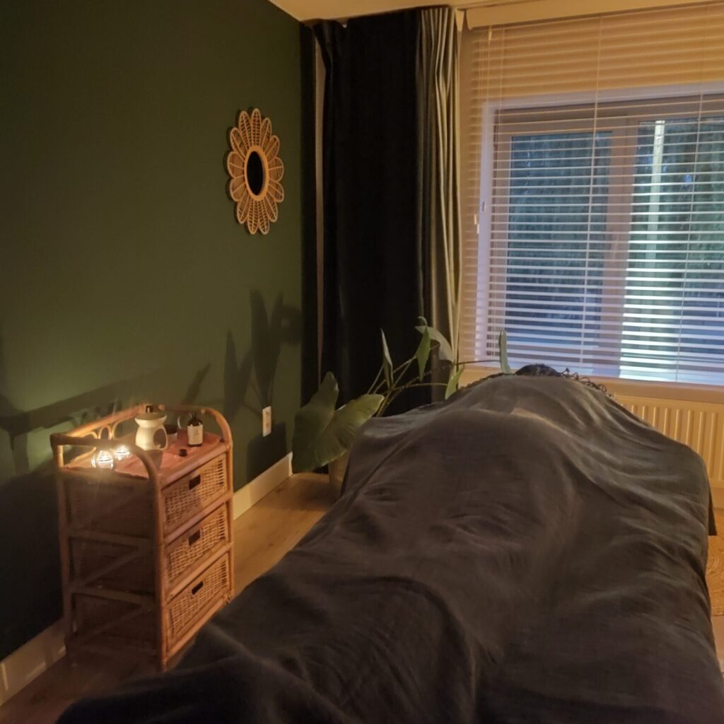 Ik zorg voor alles wat nodig is, zoals een comfortabele massagetafel, warme massageolie en ontspannende muziek (indien gewenst). Jij hoeft alleen een rustige plek in huis te creëren waar je je kunt overgeven aan de massage.